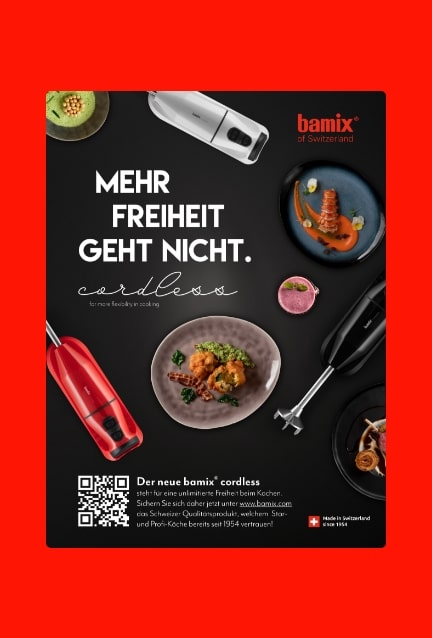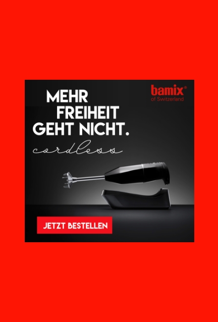 Seit 1954 entwickelt und produziert das Schweizer Unternehmen bamix® die kleinste und leistungsstärkste Küchenmaschine der Welt. Zugleich gilt bamix®, Erfinder des Stabmixers. Nun war es wieder Zeit für einen nächsten Entwicklungsschritt der "All-in-One"-Küchenmaschine. Anstatt Bluetooth-Features und anderen Spielereien, konzentriert sich bamix® vollkommen auf die leistungsstarke Performance für den kabellosen Stabmixer, um die gewohnt hohe Qualität auch bei der kabellosen Variante unter Beweis zu stellen.