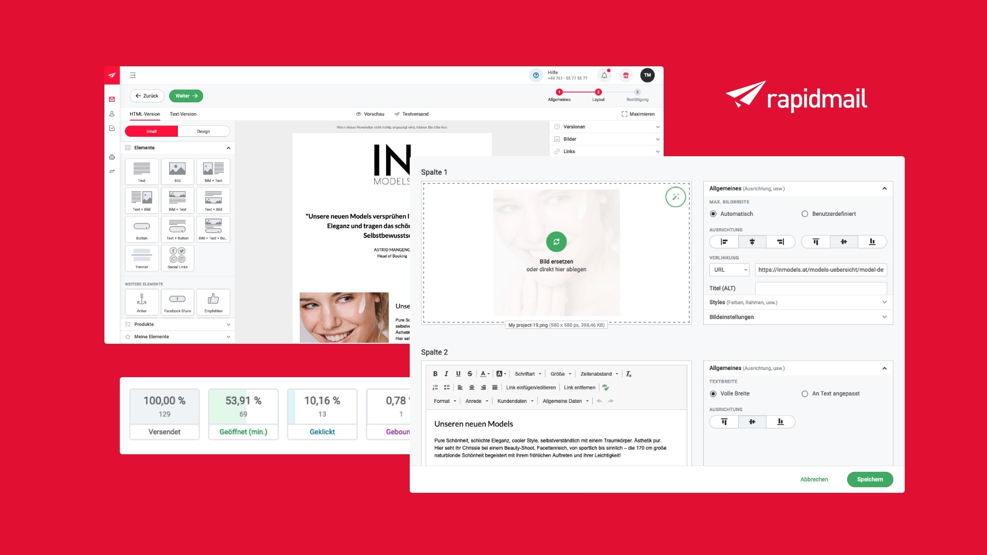 Rapidmail ist einer der beliebtesten Anbieter für die Newsletter-Erstellung im Mid-Professional-Bereich. Die simple Click and Edit-Bedienung gewährt Ihren Mitarbeitern einen schnellen Start ins System – und das ohne tiefe Vorkenntnisse. Gleich wie Inxmail setzt auch Rapidmail auf einen europäischen Standort zur Datenspeicherung.