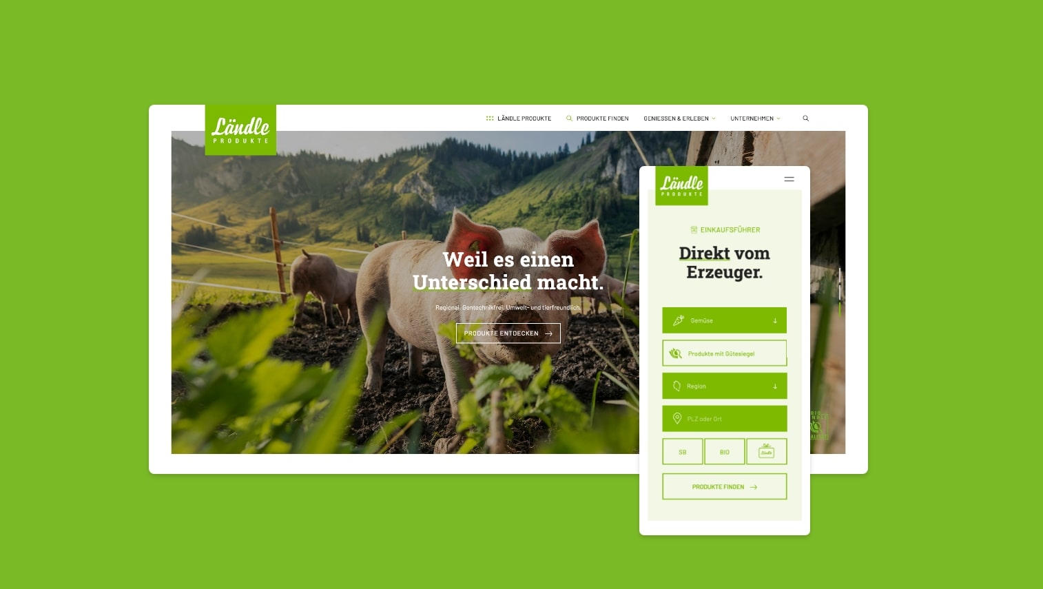Nach fast 10 Jahren der bestehenden Ländle.at-Website entschied sich das Team der Ländle Qualitätsprodukte Marketing GmbH Ende 2020 für eine komplette Erneuerung der Website. Damit sollte diese auch optisch dem hohen Qualitätsstandard der angebotenen heimischen Produkte aus Vorarlberg entsprechen, um das Bewusstsein der Konsumenten für die Vorzüge von Lebensmitteln aus der Region zu stärken. Besonders wichtig war im Zuge des Relaunches die Umstellung auf ein modernes, klar strukturiertes und freundliches Design, welches die vielfältige Regionalität durch die packende Bildwelt widerspiegelt.