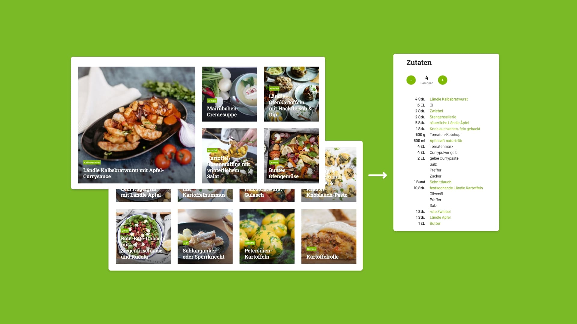 Um dem User nicht nur die zahlreichen Vorteile der Ländle Produkte und die hohen Qualitätsanforderungen zu präsentieren sowie den Kauf bei regionalen Anbietern im Hinblick auf die Nachhaltigkeit zu stärken, bietet die freundlich gestaltete Ländle-Website auch eine umfangreiche, inspirierende Rezept-Datenbank inklusive Zutaten-Kalkulator. Darüber hinaus informiert der Online-Erntekalender, welche heimischen Köstlichkeiten wann erhältlich sind.